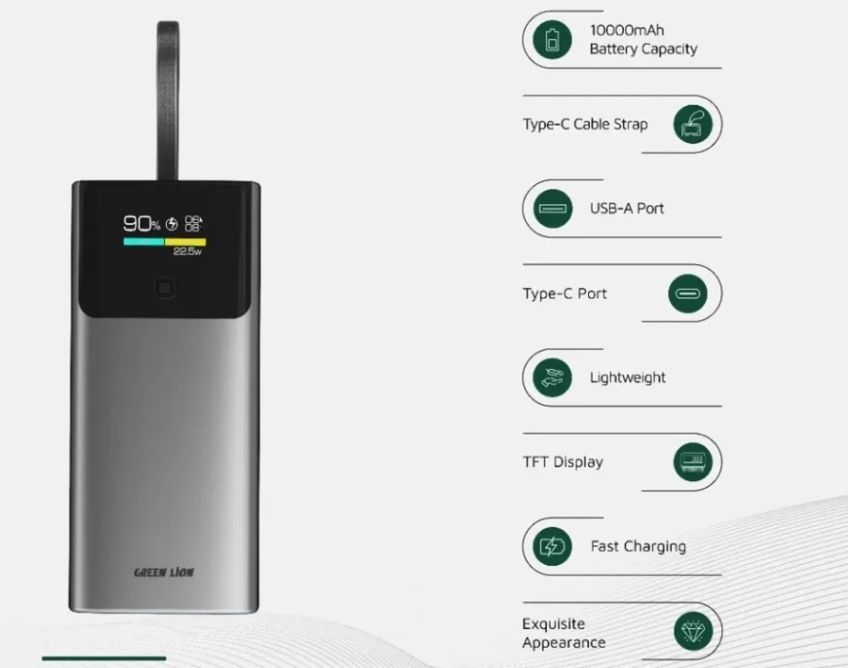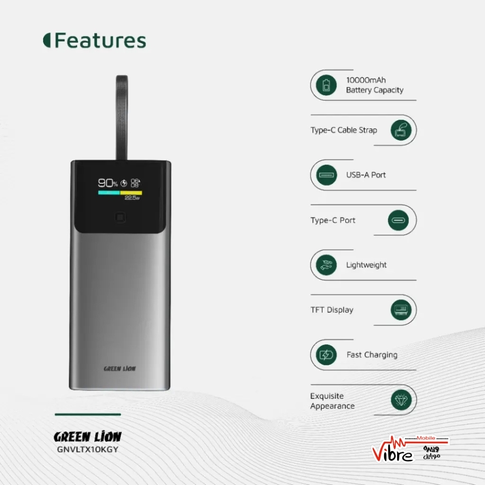 پاوربانک 10000 میلی آمپری گرین لاین Green Lion Voltix 10000mAh Power Bank PD20W