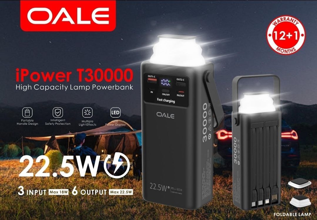 در دنیای پرشتاب امروز، داشتن یک منبع انرژی قابل حمل برای شارژ دستگاه‌های الکترونیکی تبدیل به یک نیاز اساسی شده است. پاور بانک 30000 میلی آمپر OALE مدل T30000 یکی از محصولات قدرتمند و پرفروش بازار است که با ظرفیت بالا و امکانات کاربردی، توانسته رضایت بسیاری از کاربران را جلب کند. در این مطلب به معرفی کامل، بررسی ویژگی‌ها، مزایا، معایب و کاربردهای این پاوربانک خواهیم پرداخت تا به شما در انتخابی آگاهانه کمک کنیم.